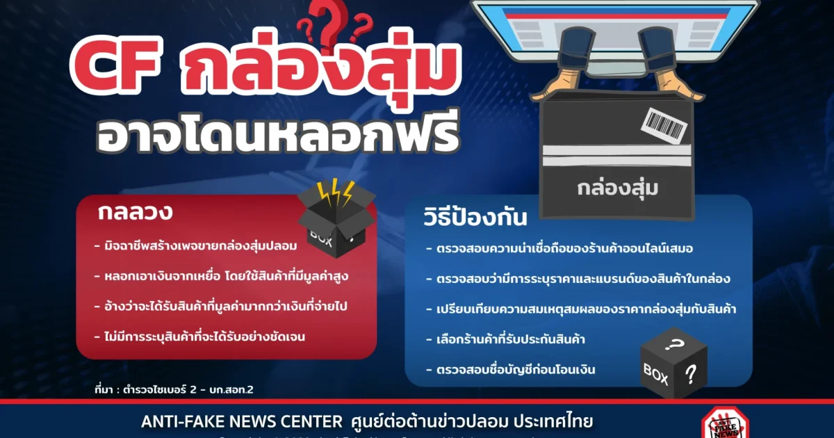 ปัจจุบันร้านค้าออนไลน์ได้นำเทคนิคขายสินค้าประเภท “กล่องสุ่ม” มาดึงดูดลูกค้า โดยอ้างว่าจะได้รับสินค้าที่มูลค่ามากกว่าเงินที่จ่ายไป แต่ไม่ได้มีการระบุสินค้าที่จะได้รับอย่างชัดเจน จึงเป็นโอกาสให้มิจฉาชีพ สร้างเพจขายกล่องสุ่มปลอมขึ้นมา เพื่อหลอกลวงเงินจากเหยื่อ โดยใช้สินค้าที่มีมูลค่าสูง ๆ มาจูงใจ