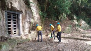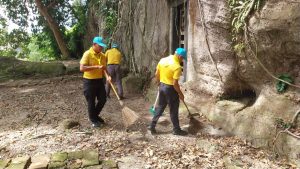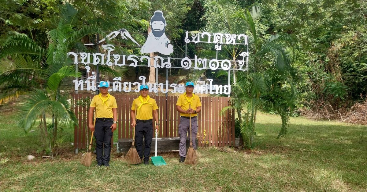 จิตอาสาร่วมเก็บกวาดขยะบริเวณถ้ำขุด 1200 ปี ม.5 ต.ชุมพล ถ้ำที่ใช้ประกอบพิธีทางศาสนาพราหมณ์สมัยโบราณ