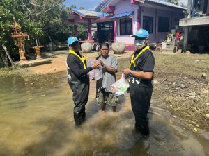 2 ธ.ค.68 ตำรวจจิตอาสา สภ.ชุมพล ร่วมแจกจ่ายน้ำดื่มและอาหารสำเร็จรูป แก่ประชาชนที่ประสบอุทกภัย ต.คลองรี อ.สทิงพระ จ.สงขลา