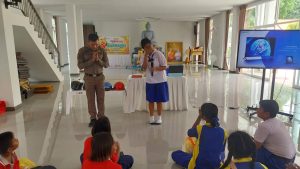 21 ก.ค.68 ตำรวจชุมชนสัมพันธ์ อบรมกฏหมายจราจรและรณรงค์การสวมหมวกกันน้อคน้องๆ ร.ร.วัดดีหลวงและ ร.ร.บ้านชะแม ณ วัดดีหลวง ต.ดีหลวง อ.สทิงพระ จ.สงขลา