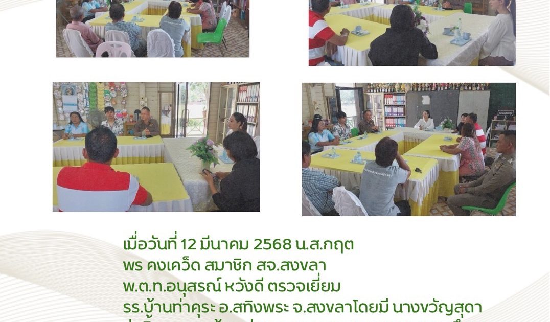 วันที่ 12 มีนาคม 2568 พ.ต.ท.อนุสรณ์ หวังดี สวญ.สภ.ชุมพล พบปะคณะกรรมการสถานศึกษา รร.วัดท่าคุระ อ.สทิงพระ จว.สงขลา