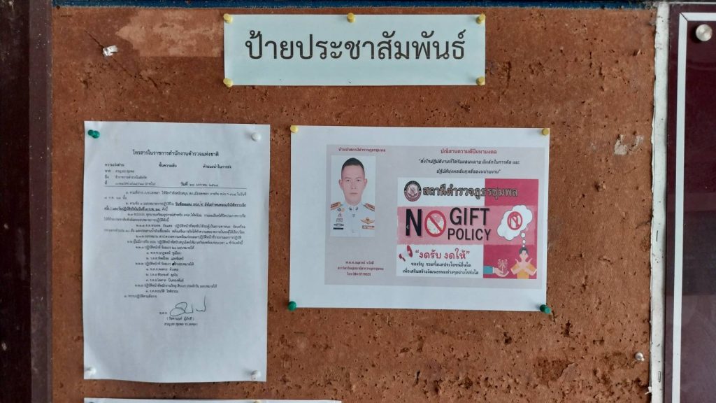 พันตำรวจโท อนุสรณ์ หวังดี สารวัตรใหญ่สถานีตำรวจภูธรชุมพล จังหวัดสงขลา ประชุมชี้แจ้งข้าราชการตำรวจในสถานีตำรวจภูธรชุมพล เกี่ยวกับการไม่รับของขวัญและของกำนัลทุกชนิด จากการปฏิบัติหน้าที่